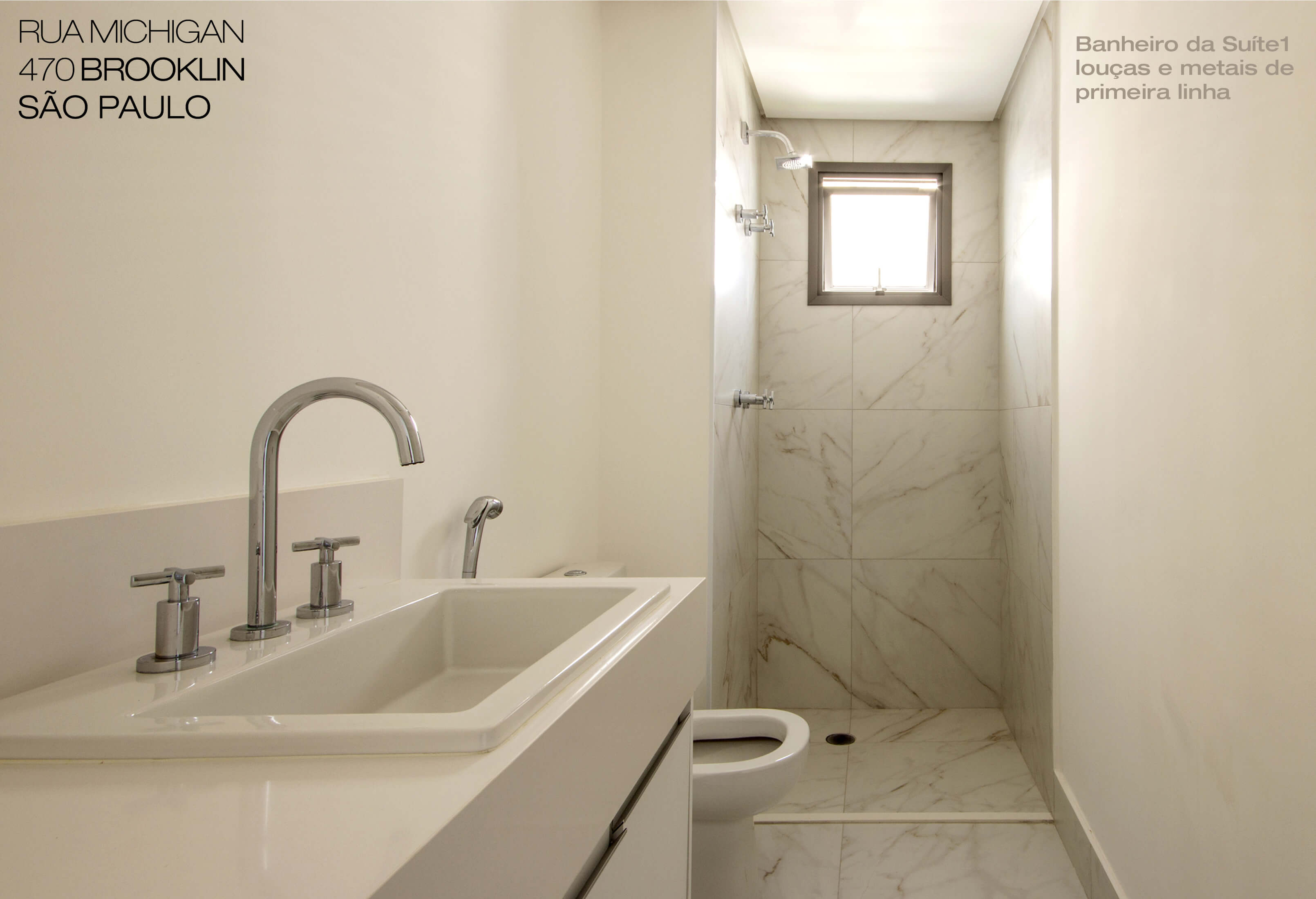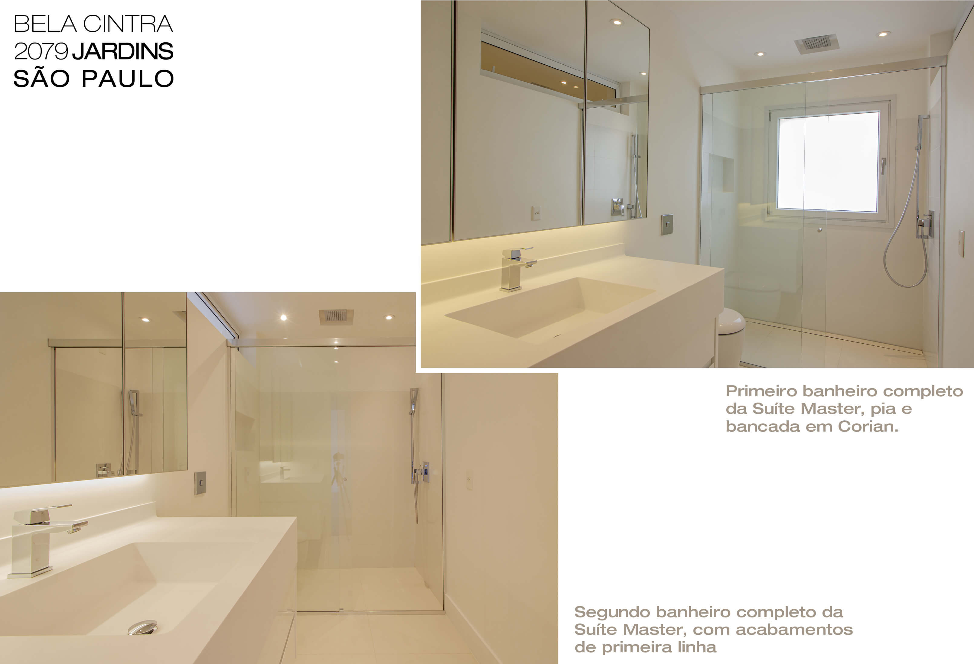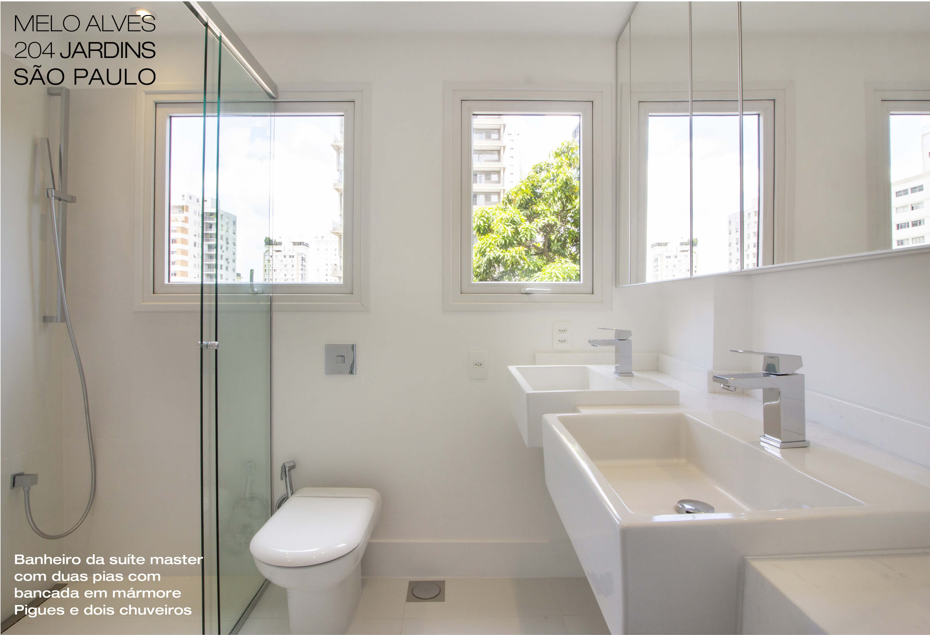 | Duas suítes | Banheiros com bancadas em mármore Piguês