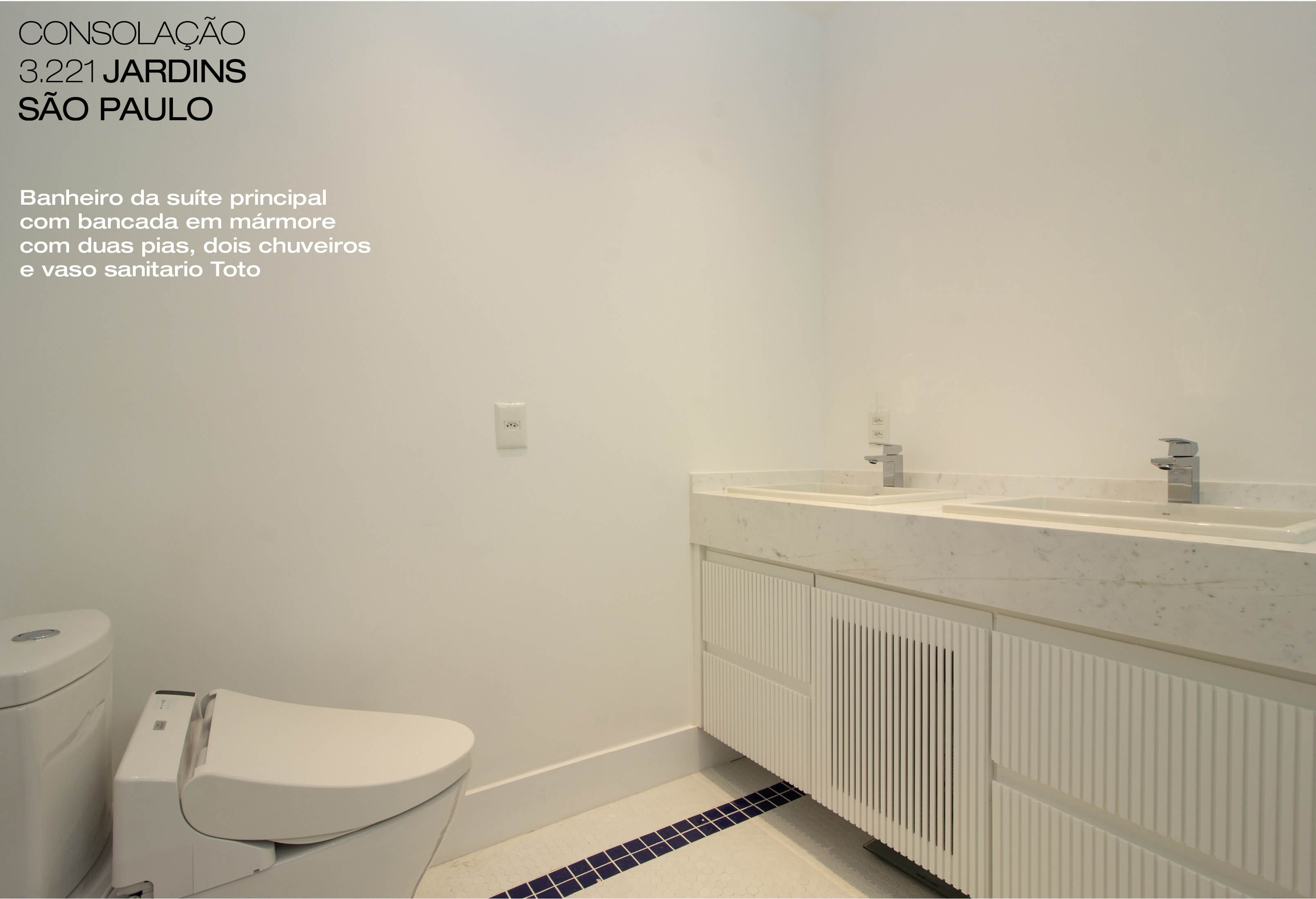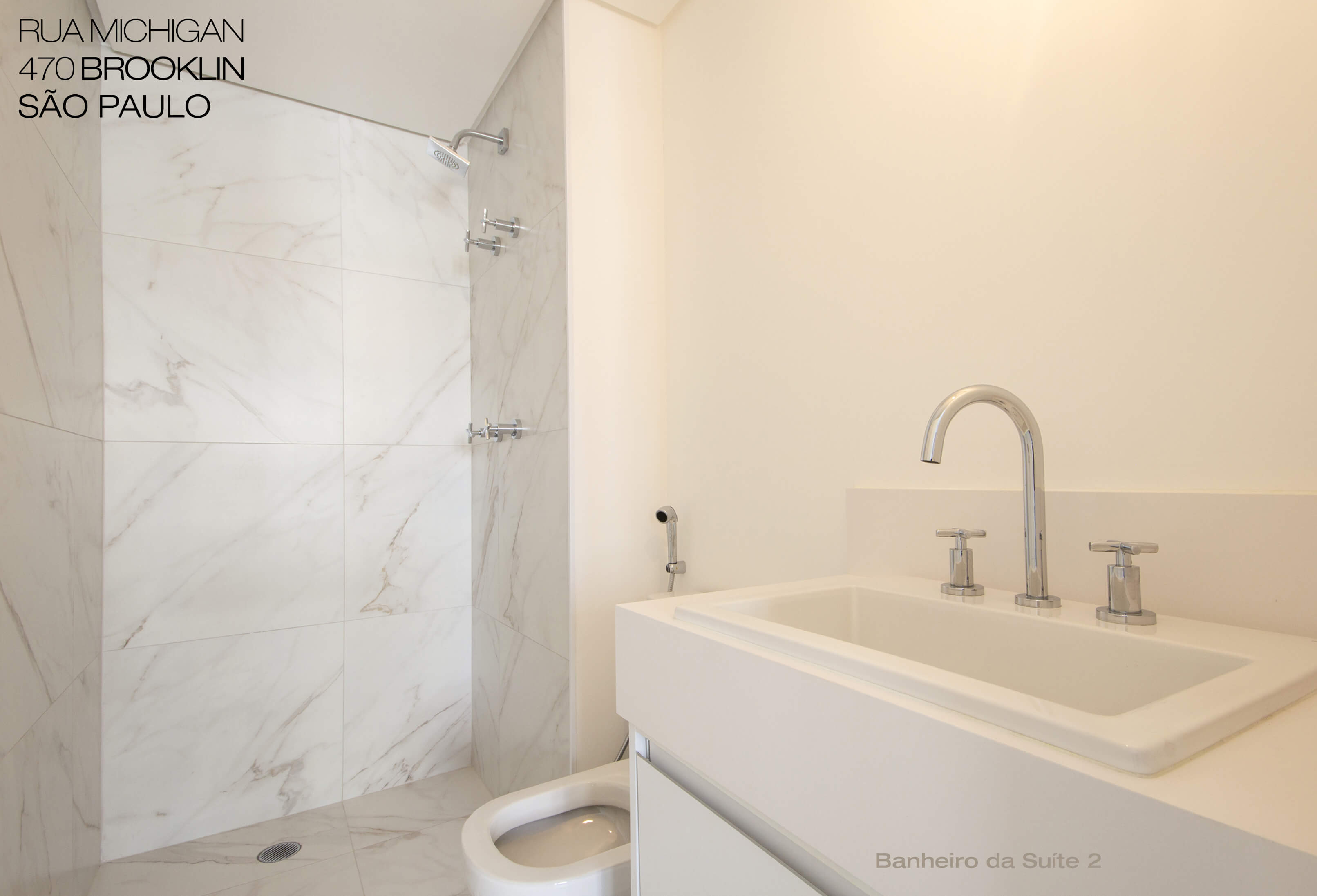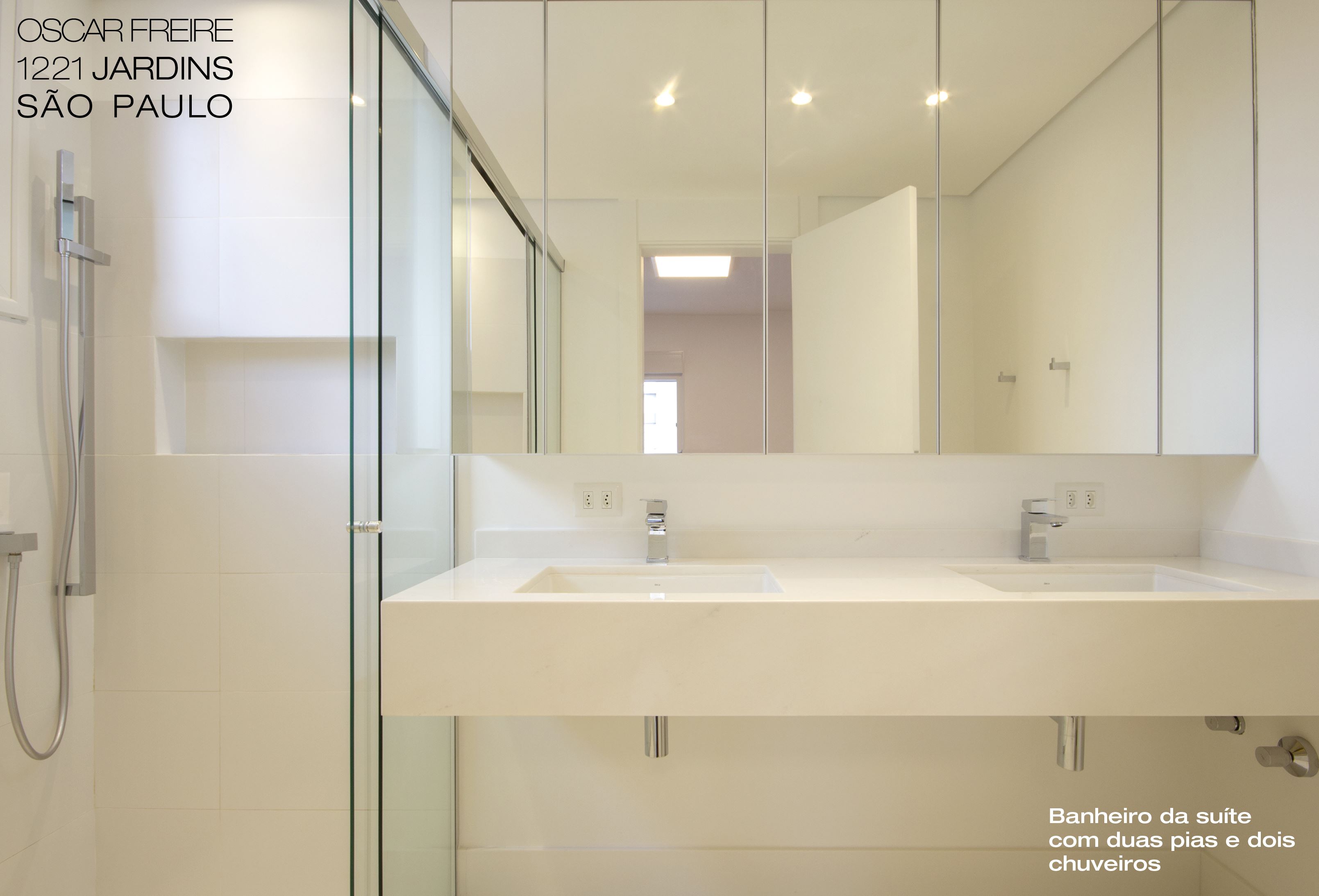 | Duas suítes | Banheiros com bancadas em mármore Piguês